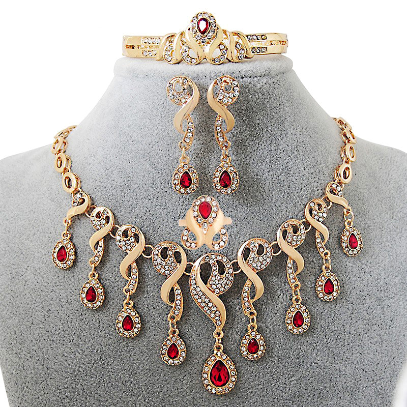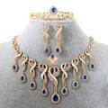 Elegant African Bridal Jewelry Set – Gold-Plated CZ Crystal Necklace, Earrings, Bracelet & Ring
