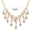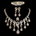Featuring a rich gold-plated finish and adorned with brilliant Austrian CZ crystals, this set showcases an intricate water-drop tassel design with graceful scroll detailing.